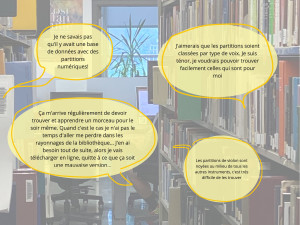 En interceptant 56 personnes fréquentant la faculté de musique de l’Université de Montréal, notre équipe a pu documenter les défis d’accès et de repérage dans la collection de partitions.